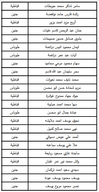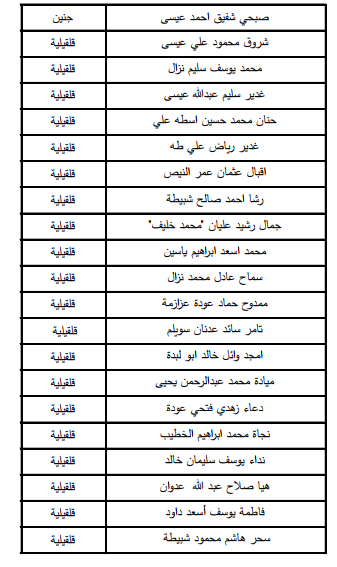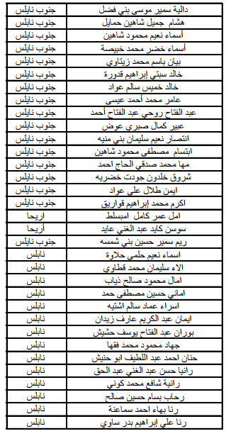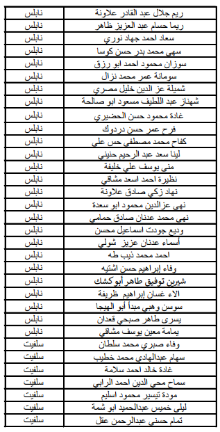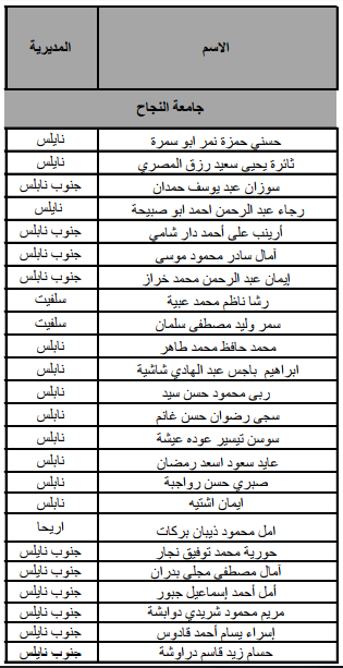 قوائم المعلمين للتخرج من جامعة النجاح.
