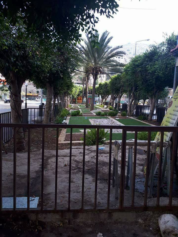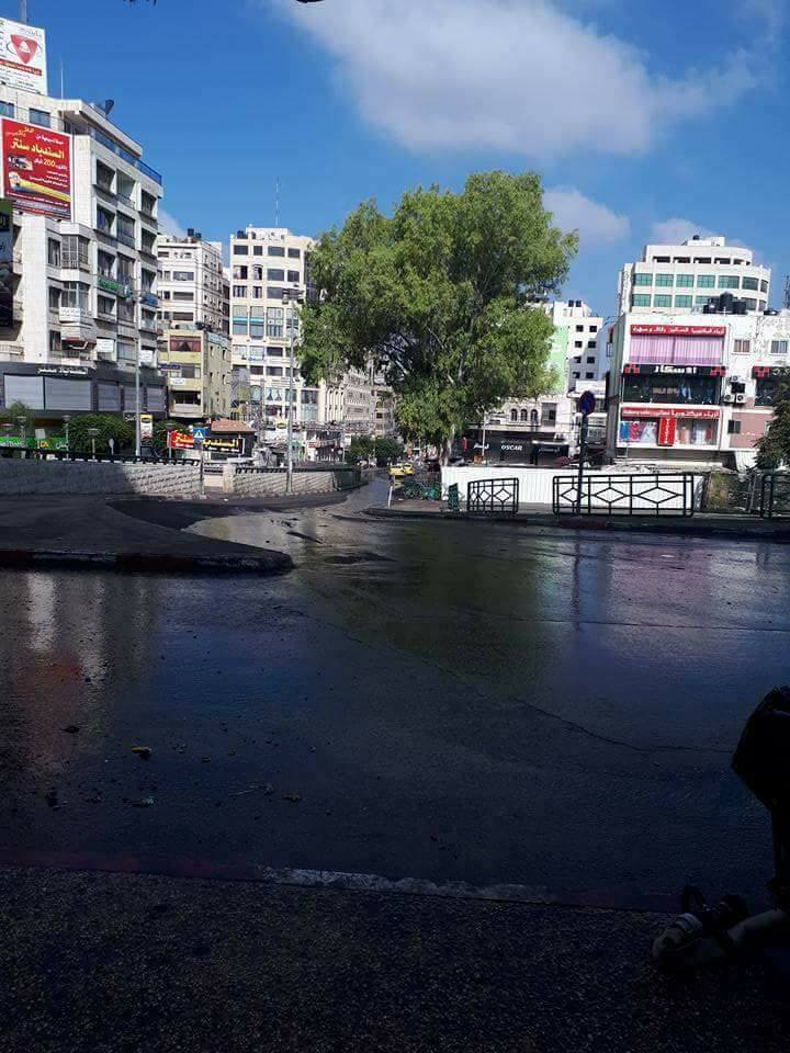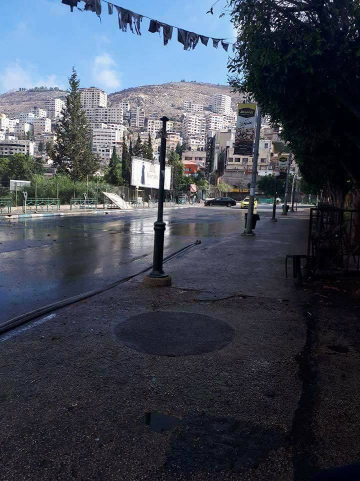 بلدية نابلس تنشر صوراً لشوارع المدينة بعد تنظيفها بالمياه في عيد الأضحى.