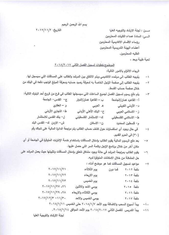 لجنة الإرشاد والتوجيه العليا في جامعة النجاح توضح خطوات التسجيل للفصل الدراسي الثاني 2017-2018.