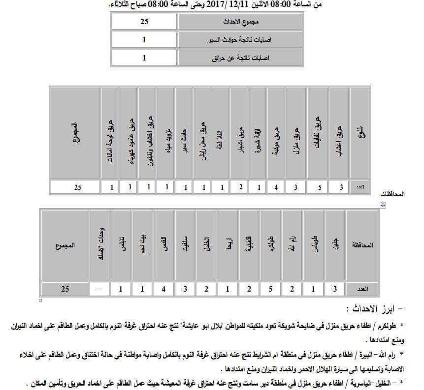 الدفاع المدني: 25 حادثاً خلال 24 ساعة