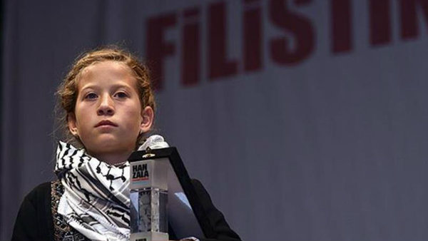 وسبق لعهد التميمي أن تسلمت جائزة "حنظلة للشجاعة" عام 2012 (الصورة أدناه)، من بلدية "باشاك شهير" في تركيا، لشجاعتها في تحدي الجيش الإسرائيلي، والتقت في حينه برئيس الوزراء التركي رجب طيب أردوغان (رئيس الجمهورية الحالي) وعقيلته.