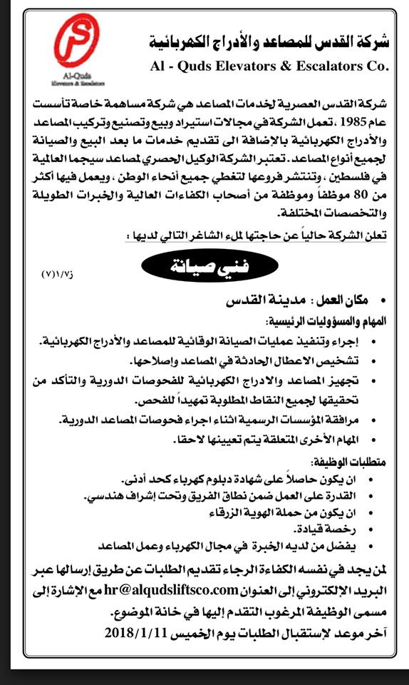 وظيفة شاغرة.. مطلوب فني صيانة