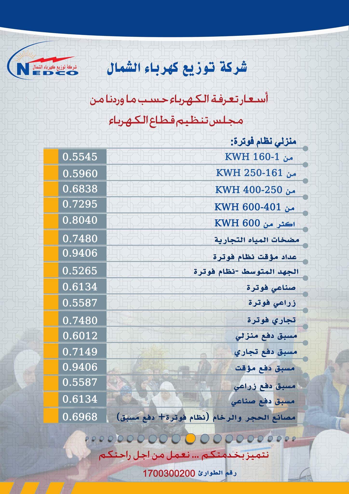 تعرفة الكهرباء والخدمات حسب مجلس تنظيم قطاع الكهرباء.