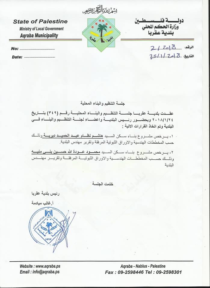 لجنة التنظيم والبناء في بلدية عقربا تعقد جلستها، وتتخذ عدة قرارات ترخيص لمشاريع داخل البلدة.