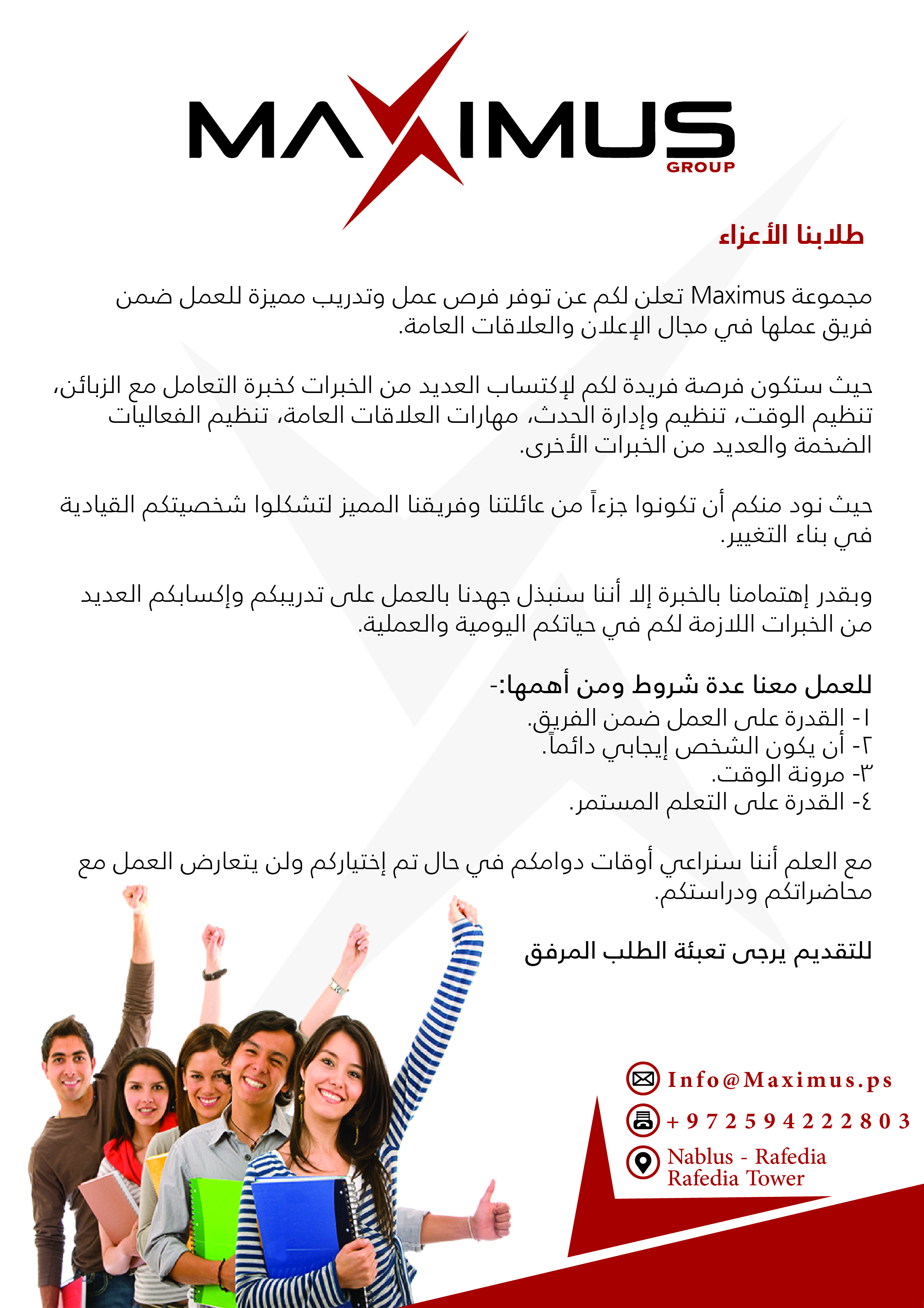 فرص عمل وتدريب في مدينة نابلس.