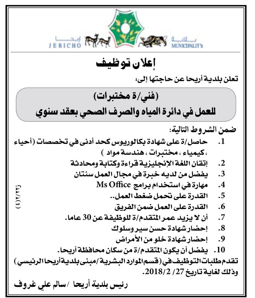 آخر موعد لاستقبال الطلبات هو 27.02.2018.
