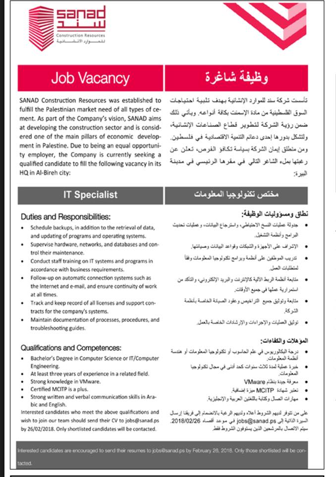 وظيفة شاغرة في شركة سند