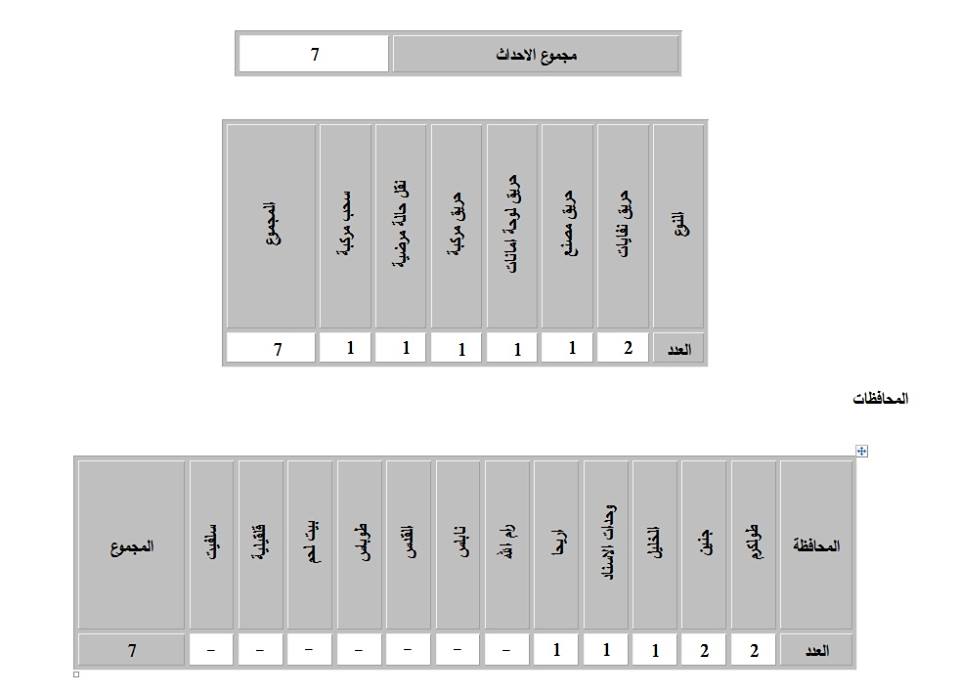 الدفاع المدني: 7 حوادث في آخر 24 ساعة