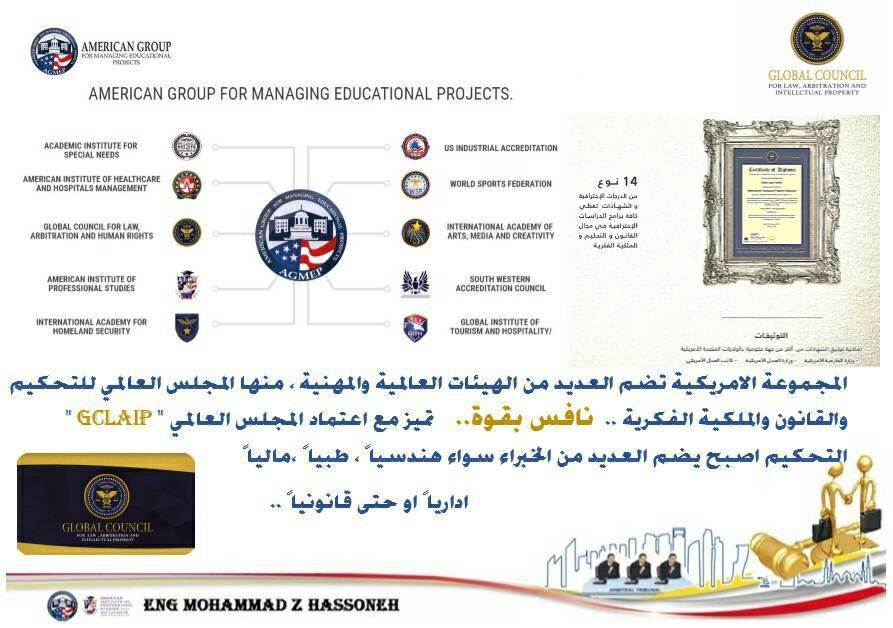 مدرب مدربين معتمد من المجلس العالمي للتحكيم والقانونGCLAIP.