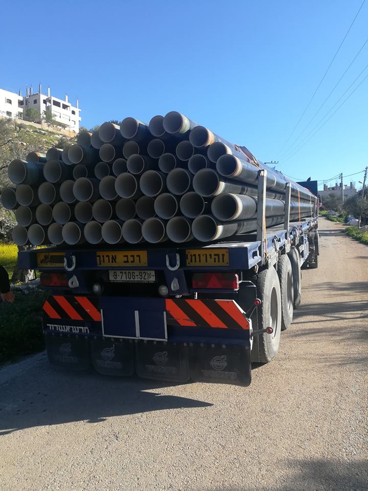 بهدف التخفيف من أزمة المياه وقبل وصول فصل الصيف، بلدية عصيرة الشمالية تستلم مواسير للخط الناقل.