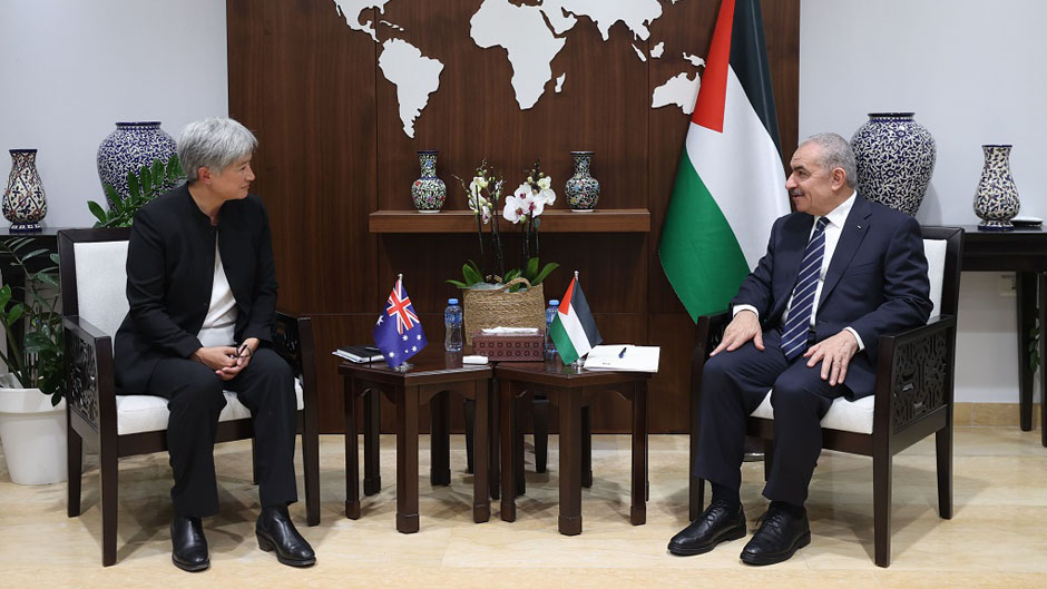 رئيس الوزراء محمد اشتية يستقبل وزيرة خارجة أستراليا بيني وونغ ويقول إن على المجتمع الدولي وقف العدوان وحرب الإبادة التي تقوم بها إسرائيل بحق الشعب الفلسطيني في الضفة وغزة.