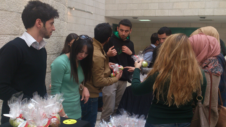 مبادرة شبابية لبيع التفاح لترويج الطعام الصحي بين الطلاب، داخل حرم جامعة النجاح الوطنية. في محاولة منهم لمحاربة ظاهرة الأطعمة غير الصحية المنتشرة في الكافتيريات أو المتاجر سواءً داخل الجامعة أو في محيطها.