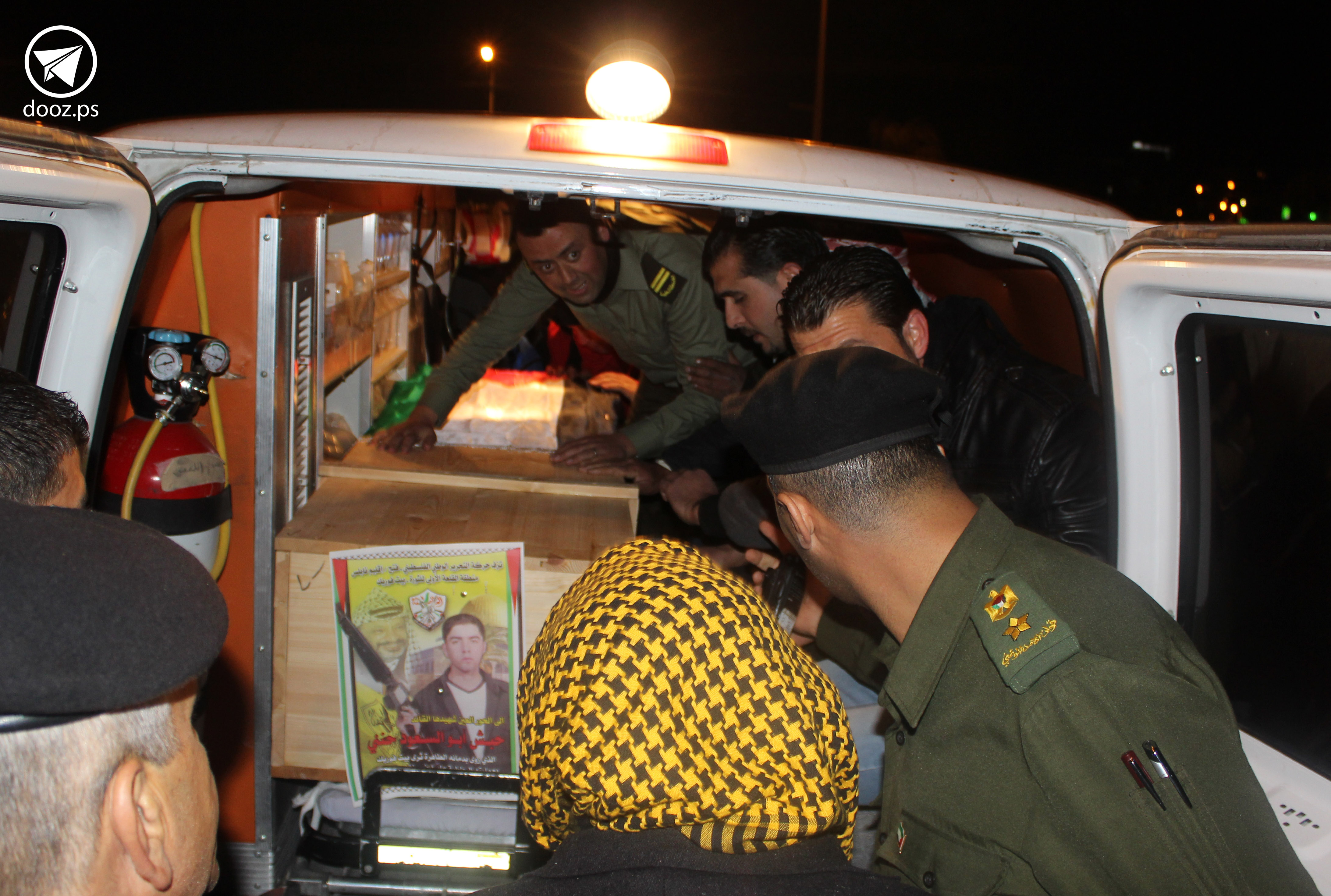 مراسم تسليم رفاة الاستشهادي حنني بحضور رسمي وشعبي تمهيداً لنقله إلى مستشفى رفيديا. تحضيرات للجنازة الرئيسة ومشاركة للأمن الوطني والمحافظة.